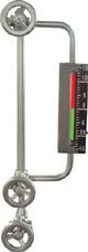 GYJ 雙色冷光源水位計是用于監測鍋爐及壓力容器水位的一次直讀儀表,表體兩側視窗玻璃成一定夾角,儀表后側配置發光二極管光源,由于光學的折射及反射原理,氣相呈紅色,液相呈綠色,兩色界面即準確指示液面。